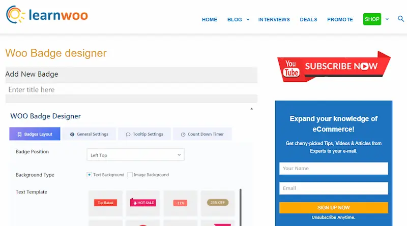 Go to the plugin’s settings panel within WooCommerce or the WordPress dashboard. Set global options such as badge positioning, size, and default styles. - Create and Customize Badges: