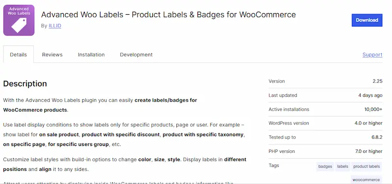 Advanced Woo Labels is a feature-rich WooCommerce plugin designed for creating promotional badges and labels that attract shopper attention. It provides extensive customization options and dynamic conditions to automate badge display. This plugin is ideal for store owners who want detailed control over badge appearance and behavior.