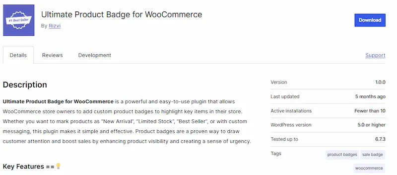 Ultimate WooCommerce Badges is a flexible plugin providing an extensive range of badge designs and conditions. It supports automation and manual badge placement, catering to stores looking for a powerful yet simple badge solution.