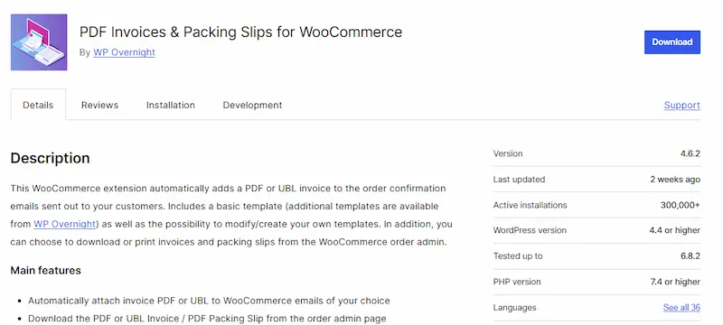 WooCommerce PDF Invoices & Packing Slips is a free and essential plugin for any e-commerce store. It automatically creates PDF invoices and packing slips for all your orders, which can be easily downloaded and printed. This plugin streamlines the order preparation process by providing clear, professional documentation for your team to use when fulfilling orders.